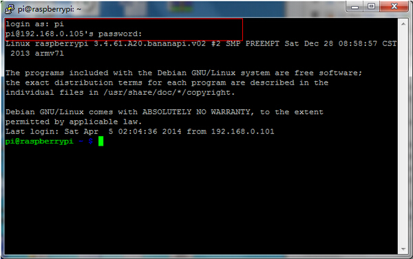 如果下载的是 BananaPi_For_Cubieboard_v1.0.tgz和BananaPi_For_RaspberryPi_v1.0.tgz这两个镜像,SSH服务器已经被默认安装并且会在你开启Banana Pi的时候启动。所以我们通常不会向板子上配置SSH 。